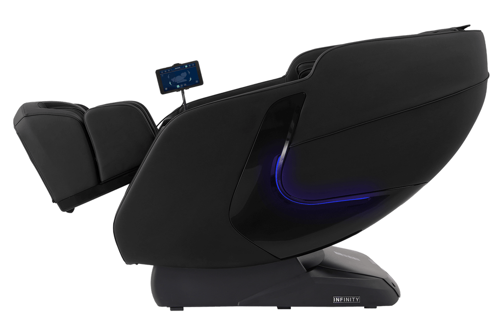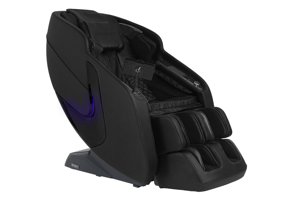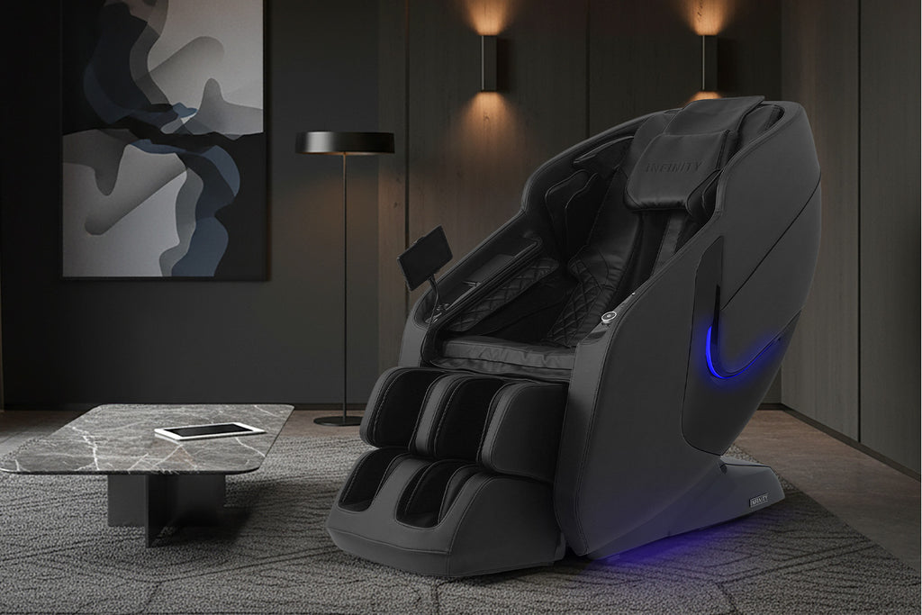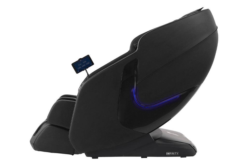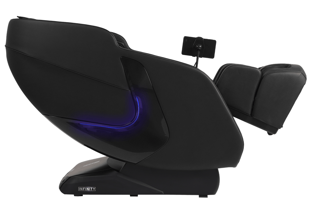 Equipped with a versatile, 4-Node Back Massage Mechanism, the Solstice Deluxe offers a full range of techniques — including shiatsu, kneading, tapping, and knocking, that work together to soothe tension and refresh tired muscles. The variety ensures you enjoy a massage that feels both dynamic and tailored, bringing spa-inspired relief into the comfort of your home. Before every session, TrueFit® Body Scanning Technology analyzes your unique size and shape to ensure the massage begins perfectly tuned to your body. For full-body rejuvenation, the Solstice Deluxe pairs dual foot rollers and airbag compression therapy to ease tension and improve circulation, while soothing lumbar heat helps melt away stress. Built-in Bluetooth Speakers, a smart dial controller, and convenient device charging keep your sessions immersive and effortless. To complete the experience, chromotherapy lighting sets a calming mood, delivering a holistic escape that goes far beyond relaxation.
