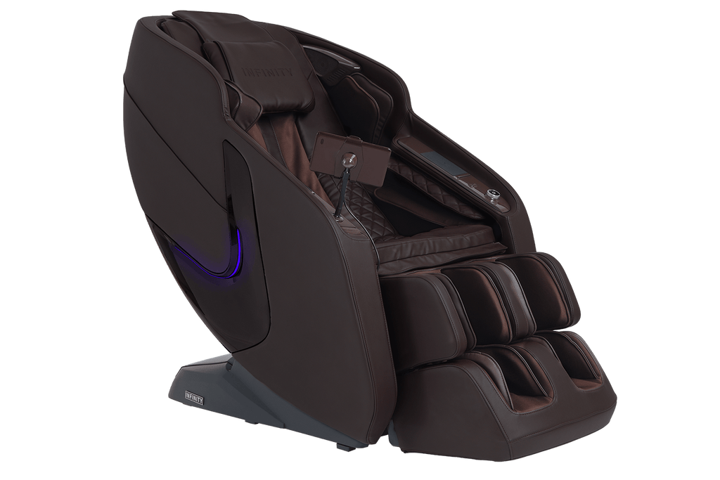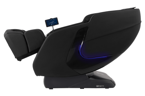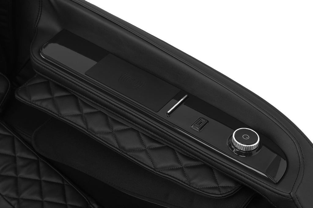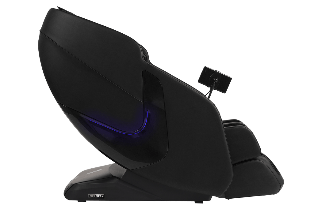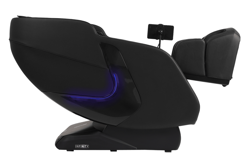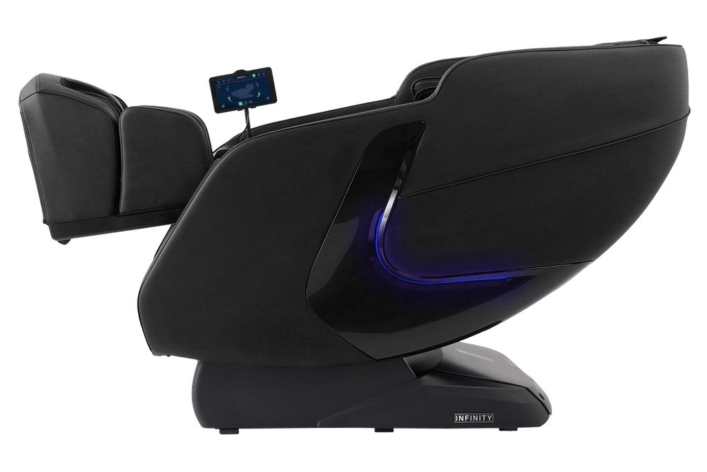 Equipped with a versatile, 4-Node Back Massage Mechanism, the Solstice Deluxe offers a full range of techniques — including shiatsu, kneading, tapping, and knocking, that work together to soothe tension and refresh tired muscles. The variety ensures you enjoy a massage that feels both dynamic and tailored, bringing spa-inspired relief into the comfort of your home. Before every session, TrueFit® Body Scanning Technology analyzes your unique size and shape to ensure the massage begins perfectly tuned to your body. For full-body rejuvenation, the Solstice Deluxe pairs dual foot rollers and airbag compression therapy to ease tension and improve circulation, while soothing lumbar heat helps melt away stress. Built-in Bluetooth Speakers, a smart dial controller, and convenient device charging keep your sessions immersive and effortless. To complete the experience, chromotherapy lighting sets a calming mood, delivering a holistic escape that goes far beyond relaxation.